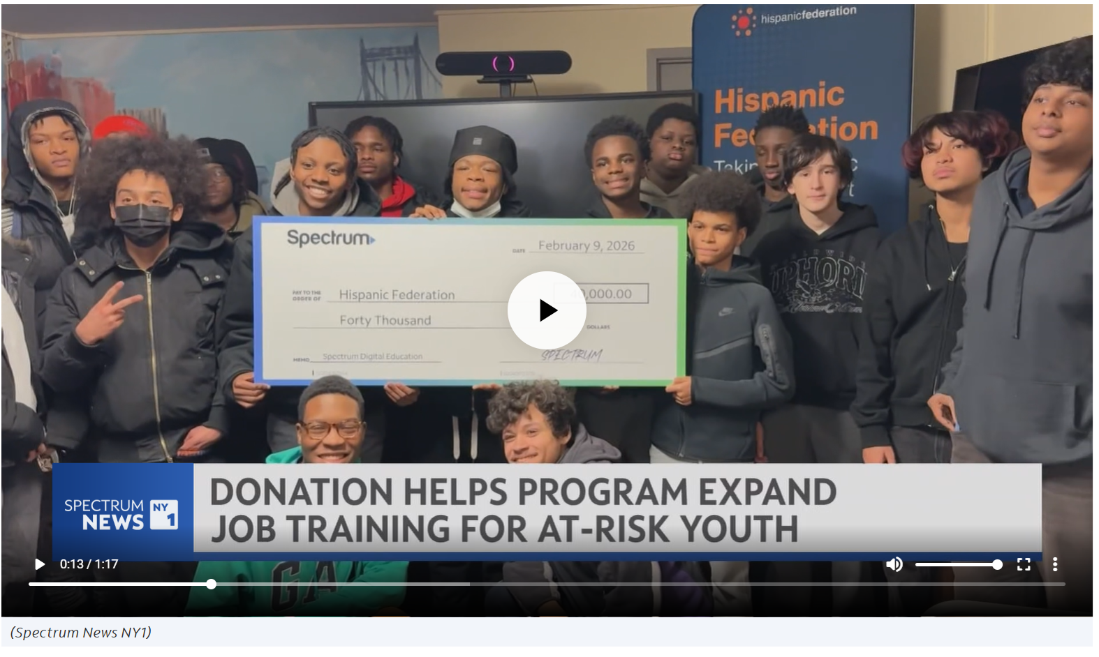 A program that provides an alternative to incarceration for teenagers in Harlem is expanding its computer lab, thanks to a $40,000 donation from the Hispanic Federation and our parent company Spectrum.